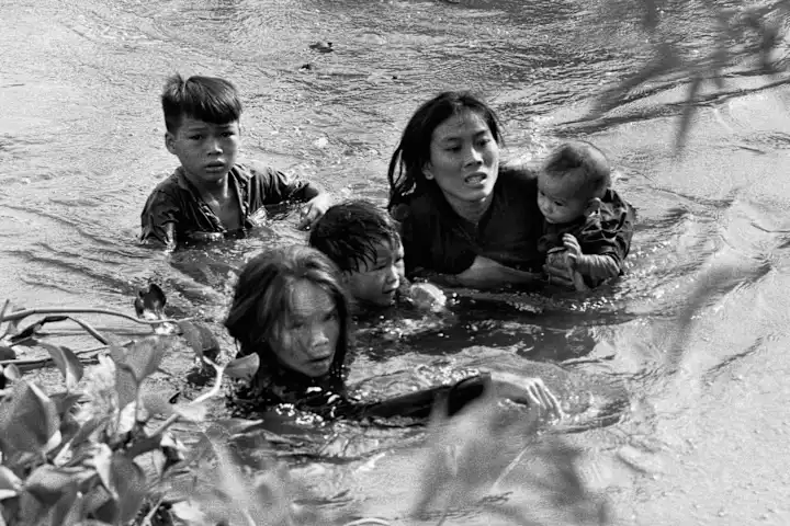 De todas as fotos que ele tirou ao longo dos anos, “Flee to Safety” , que mostra duas mulheres vietnamitas atravessando um rio com seus filhos para escapar de um ataque à sua aldeia, pode ser a mais famosa.
