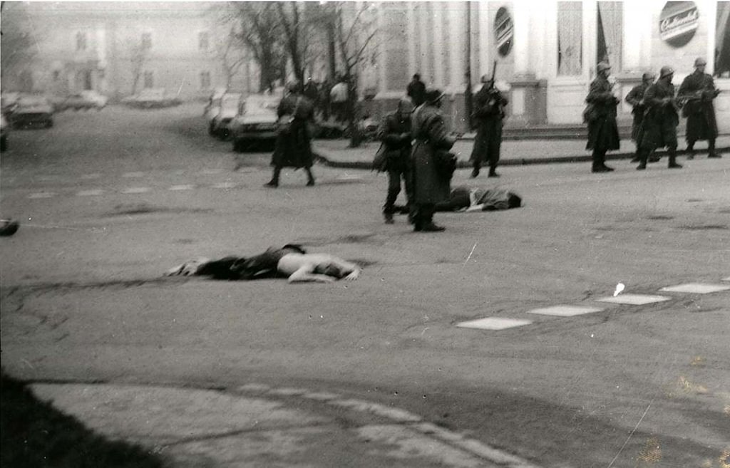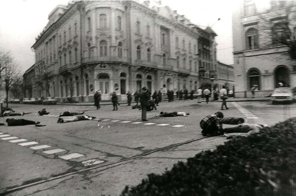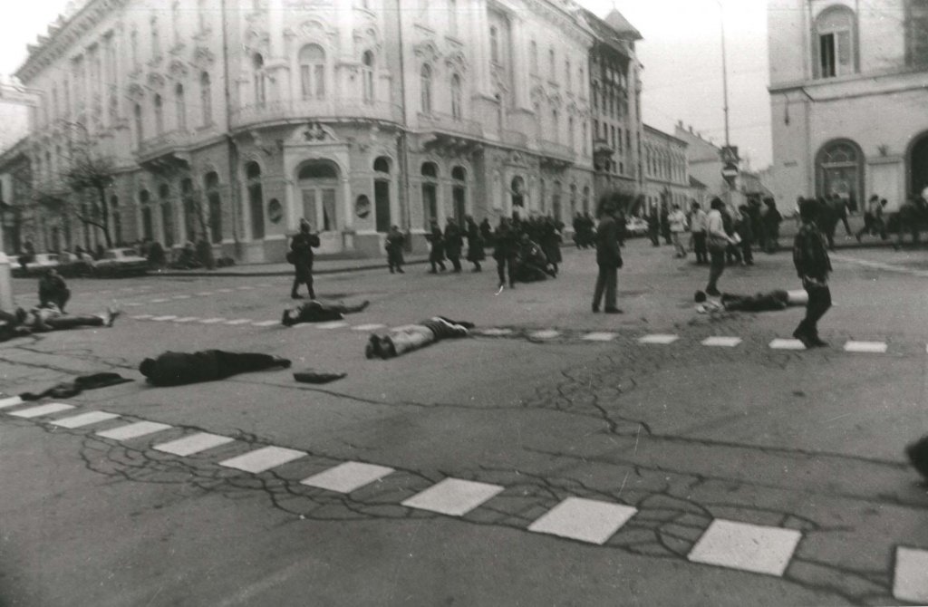 - 21 de dezembro de 1989: Ceaușescu, recém-chegado de uma viagem ao Irã, tentou acalmar a situação com um discurso na sacada do Comitê Central do Partido Comunista em Bucareste.