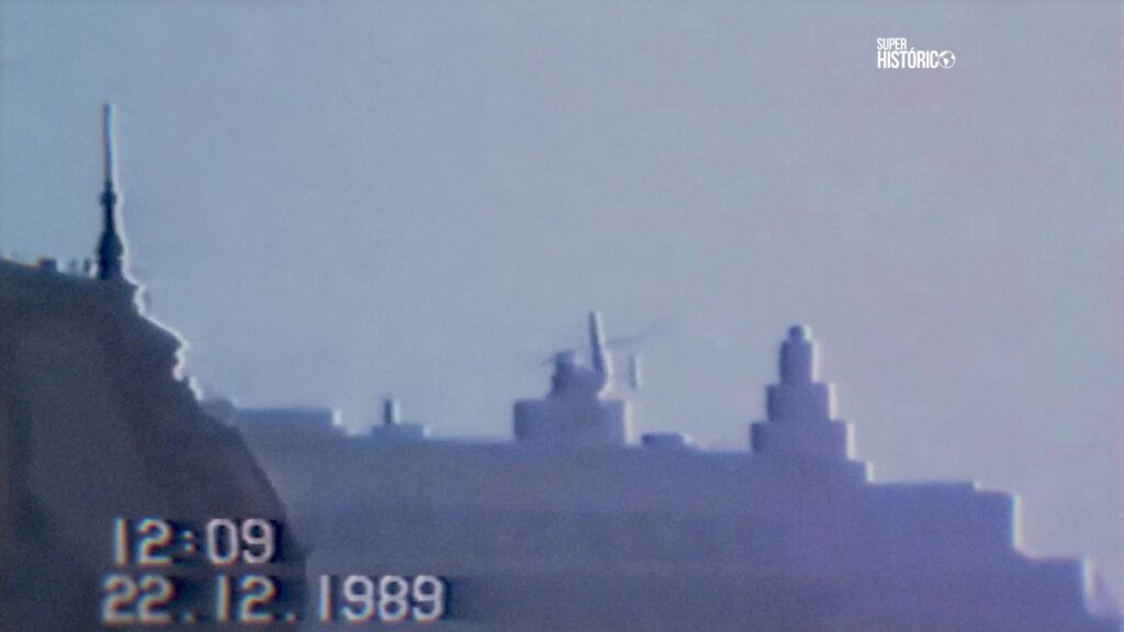 - O ditador e Elena fugiram de helicóptero do telhado do prédio do Comitê Central, enquanto a multidão invadia o local.