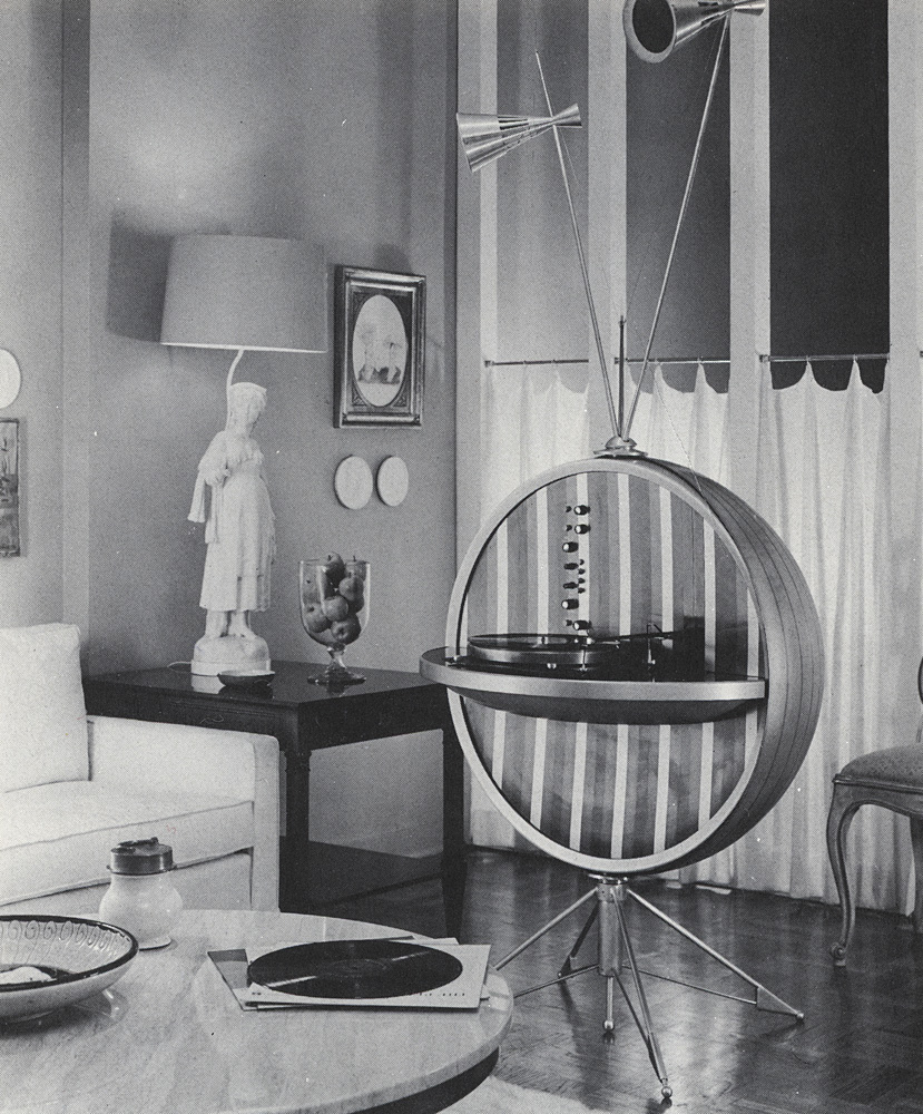 Este aparelho de televisão avançado, concebido para uma década à frente, pode receber programas via satélite do mundo todo.