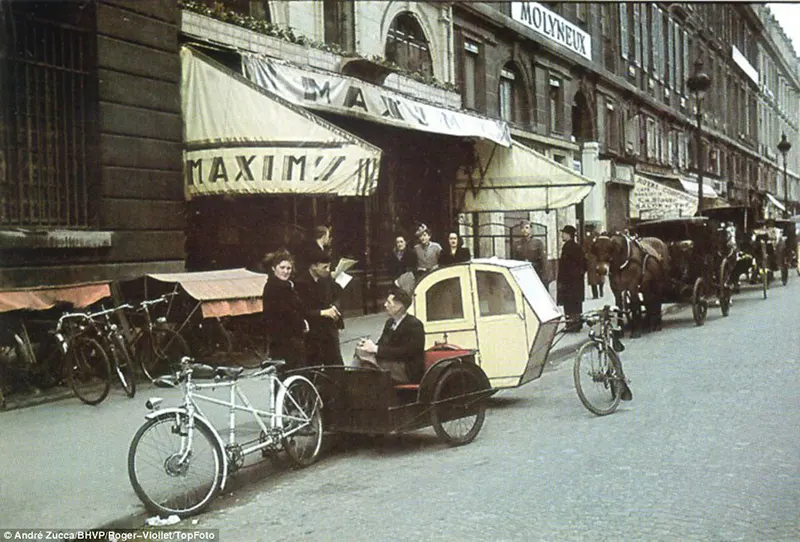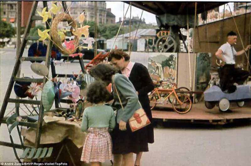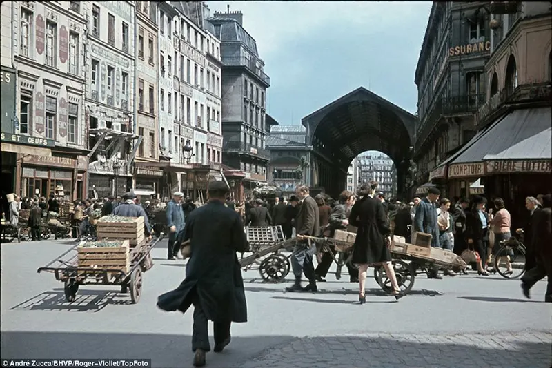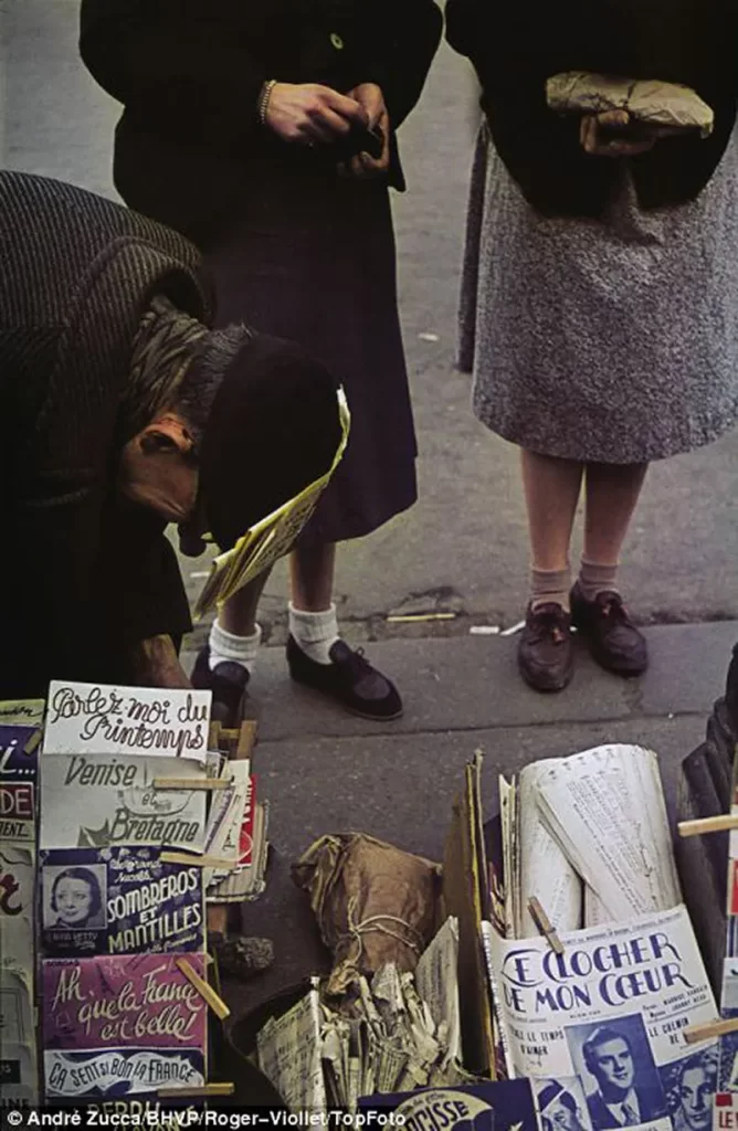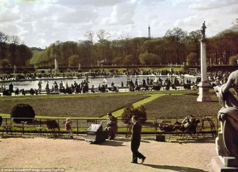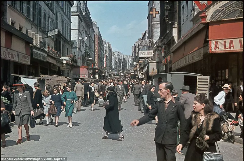 Durante a ocupação nazista na França, o fotógrafo francês André Zucca registrou cenas raras — e coloridas — do cotidiano em Paris. Essas imagens foram feitas com o sofisticado filme Agfacolor, fornecido pela Wehrmacht, e publicadas na revista alemã de propaganda chamada Signal.